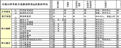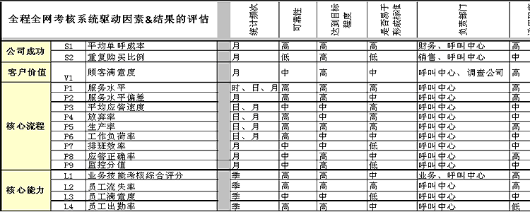 上表為與全程全網(wǎng)考核策略目標相匹配的驅(qū)動因素指標與結(jié)果指標的列示。