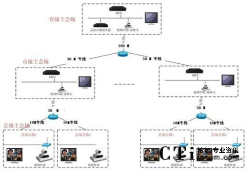 整個電視會議系統(tǒng)省中心放置一套Elite 5230 MCU核心MCU設(shè)備;ECS網(wǎng)閘熱備系統(tǒng)集中部署在省中心機房,提供對全網(wǎng)的所有MCU以及終端設(shè)備的管理和認(rèn)證;在省中心機房部署1套桌面通信會議系統(tǒng),滿足全省PC桌面會議需求以及出差用戶的會議需求;在省中心機房部署一套iViewSuite會議管理通信系統(tǒng),滿足全省所有會議設(shè)備的管理、維護、會議調(diào)度、會議預(yù)約、會議以及事件日志記錄等。