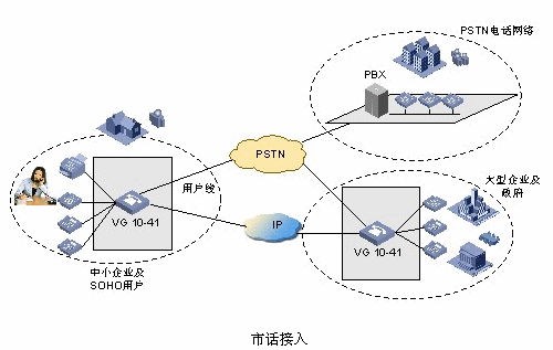 VG 語音網(wǎng)關(guān)的主要作用是完成語音或傳真信號的接入,將模擬語音、傳真信號轉(zhuǎn)換成數(shù)字信號進(jìn)行分組后打成IP包,通過網(wǎng)絡(luò)側(cè)以太網(wǎng)接口接入到IP網(wǎng)絡(luò)進(jìn)行轉(zhuǎn)發(fā);該設(shè)備也能實現(xiàn)數(shù)據(jù)業(yè)務(wù)的寬帶接入,用戶側(cè)提供一個以太網(wǎng)接口,可以與PC或局域網(wǎng)相連。