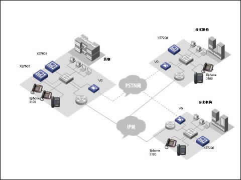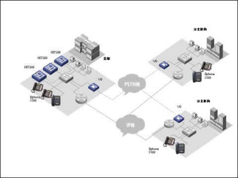 華為三康的XE7000IP語音解決方案是為企業(yè)提供融合的通信解決方案,在同一網(wǎng)絡(luò)上融合語音、數(shù)據(jù)和視頻信息,以滿足其日益增長的企業(yè)通信的要求從而解決了現(xiàn)代企業(yè)面對的傳統(tǒng)PBX語音服務(wù)和IP網(wǎng)絡(luò)數(shù)據(jù)服務(wù)分離問題。華為三康的XE7000IP語音解決方案構(gòu)建在企業(yè)現(xiàn)有IP數(shù)據(jù)網(wǎng)絡(luò)之上,以集中式管理方式提供企業(yè)全網(wǎng)范圍內(nèi)的呼叫控制以及管理,業(yè)務(wù)控制和信令分離使得用戶在管理上更加簡單透明,極大的節(jié)省了日常維護(hù)費(fèi)用和降低了維護(hù)難度。并使得客戶可以在任意地方實(shí)現(xiàn)IP語音數(shù)據(jù)接入,使得企業(yè)分布式辦公的不再因?yàn)槲锢砜臻g隔離而無法實(shí)現(xiàn)。