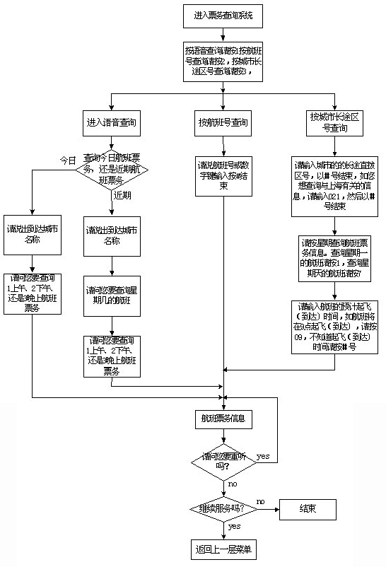 該系統(tǒng)主要采用語(yǔ)音技術(shù)實(shí)現(xiàn)航班信息查詢,系統(tǒng)的主業(yè)務(wù)流程如圖一至五示。