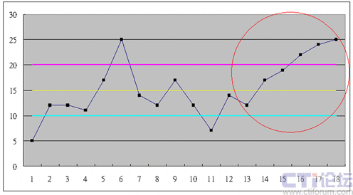 6就是在控制圖中,數(shù)據(jù)連續(xù)有6個點往上或往下;
