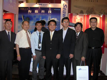 圖為臺灣萬通公司董事長到海狼科技展臺參觀