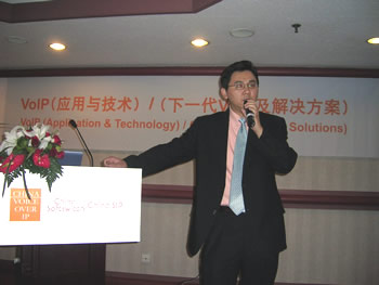 2005年5月19日下午,海狼科技的首席執(zhí)行官----Danny Lu博士,在長城飯店的蘭花廳舉辦了"X彩虹軟交換:下一代新電信的完整解決方案"專題演講會,吸引了眾多運營商及服務(wù)商參加,在演講會上,鹿博士闡述了VOIP在美國的發(fā)展與中國的發(fā)展趨勢。并詳盡介紹了"X彩虹軟交換"的完整商務(wù)功能及運營方案,并與參會者積極互動式交流,解答了眾多參會者的問題。