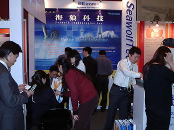 2005年5月18日在北京長城飯店召開的《2005中國IP語音網(wǎng)絡(luò)、軟交換及SIP研討會暨展覽會》上,海狼科技展臺前人頭攢動,很多商家對海浪科技技術(shù)和產(chǎn)品的表現(xiàn)感到相當(dāng)滿意,并有新加坡、臺灣客戶現(xiàn)場購買產(chǎn)品。