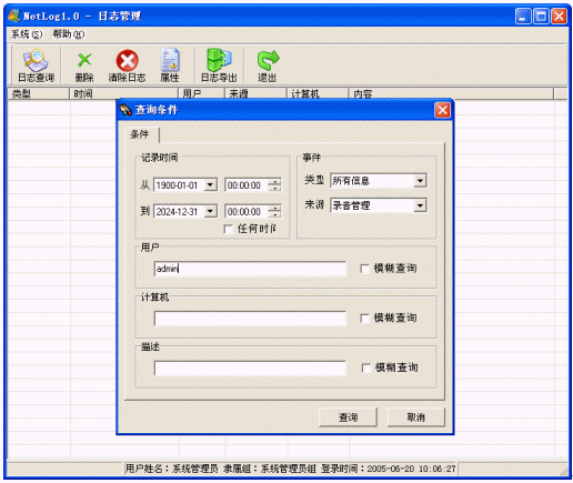 Netlog系統(tǒng)中控制臺(tái)是一個(gè)統(tǒng)一配置和管理的平臺(tái),可以部署在網(wǎng)絡(luò)內(nèi)的任意一臺(tái)主機(jī)上,各個(gè)功能模塊都可以單獨(dú)工作,也可以同時(shí)使用,控制臺(tái)所有模塊可以通過(guò)系統(tǒng)導(dǎo)航(ToolBar)來(lái)引導(dǎo)啟動(dòng)。用戶可以通過(guò)控制臺(tái)操作網(wǎng)絡(luò)上所有記錄服務(wù)、數(shù)據(jù)服務(wù)和文件服務(wù)?刂婆_(tái)作為最終用戶終端可以完成用戶的所有操作,設(shè)置每個(gè)服務(wù)器甚至每個(gè)通道的屬性、執(zhí)行各種用戶操作、指定服務(wù)的工作方式、錄音查詢、錄音管理、輸出報(bào)表、排班等?刂婆_(tái)根據(jù)用戶權(quán)限的不同限定用戶的操作,更好的保障了系統(tǒng)的運(yùn)行和語(yǔ)音記錄文件的安全。