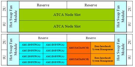 從上面的例子已經(jīng)可以看出,2U ATCA雖然很小,但是利用其靈活的網(wǎng)絡(luò)拓?fù)浣Y(jié)構(gòu),配合不同的AMC模塊,可以實現(xiàn)復(fù)雜的、過去要用龐大的系統(tǒng)平臺才能實現(xiàn)的功能。