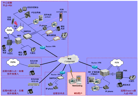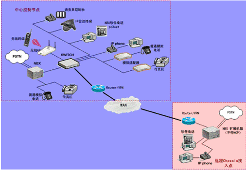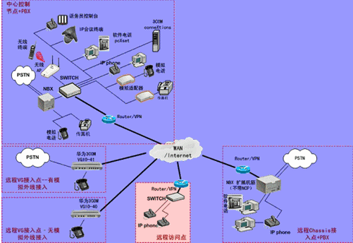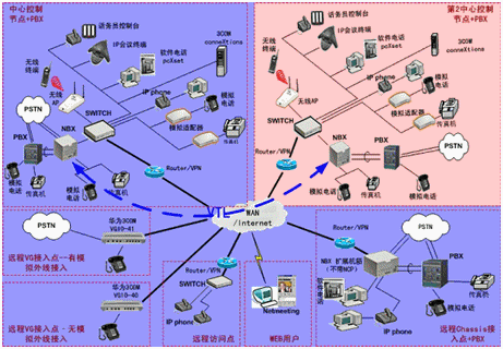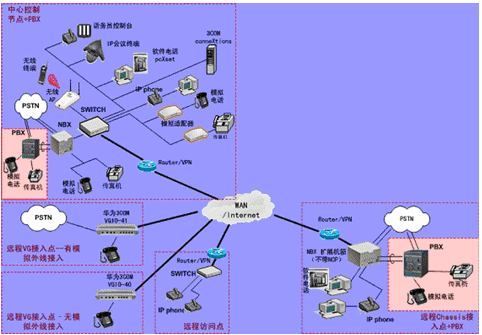 IPPBX將成為企業(yè)辦公不可缺少的一部分。此方案適合于已經(jīng)有PBX的公司,由于先期已經(jīng)投入了PBX設備,費用昂貴,所以不會輕易被替換。在外地有多家分公司,使用傳統(tǒng)電話通訊費用很高,希望能降低成本。并希望在分公司所在城市可以通過當?shù)氐腜STN落地,節(jié)省長途費用。依照客戶的需求,我們制定了以下方案: