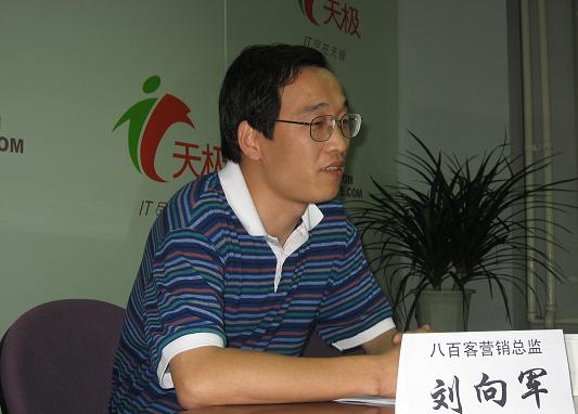 劉向軍:一個(gè)公司的名稱一定有它的含義。當(dāng)時(shí)創(chuàng)業(yè)的時(shí)候來講,這個(gè)名字意思很多。其中很重要的就是一個(gè)理念。當(dāng)時(shí)對(duì)未來市場(chǎng)的評(píng)估看不太清楚,但是對(duì)一個(gè)提供在線托管服務(wù)廠商,單位廠商認(rèn)為至少要到八百個(gè)客戶。所以八百客具有八百個(gè)客戶的意思。當(dāng)然還有其他的意思。現(xiàn)在八百客經(jīng)過這么兩年的時(shí)間,無論從產(chǎn)品技術(shù),還是從客戶的現(xiàn)在擁有量,還是在市場(chǎng)影響層面,已經(jīng)站住腳跟。當(dāng)然一個(gè)行業(yè)的發(fā)展,這種趨勢(shì)越來越快。