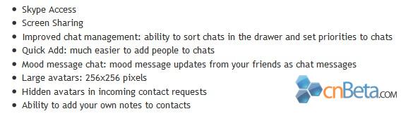 Skype 2.8 for Mac將于明天正式發(fā)布,它將帶來(lái)全新的功能,包括"屏幕共享"(screen sharing)和整合Wi-Fi熱點(diǎn)連接功能。此次新版本將首先向Mac OS X發(fā)布,不知道是不是為了迎接Macworld的到來(lái)。此次版本主要更新以下幾點(diǎn):