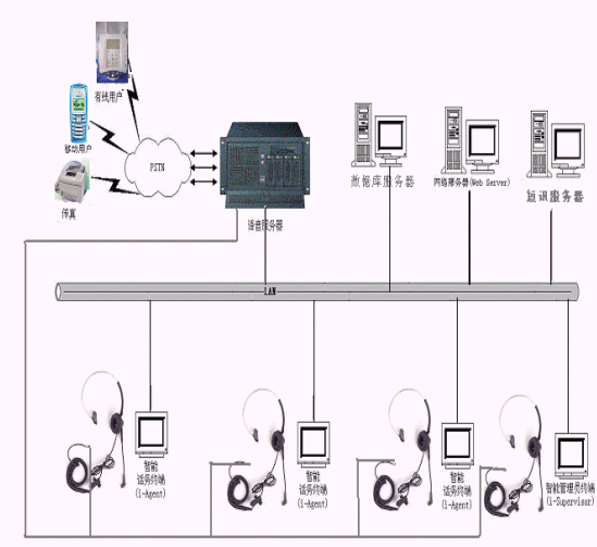 一類是基于傳統(tǒng)的PBX方式,為專用排隊(duì)機(jī)結(jié)構(gòu),該結(jié)構(gòu)基于自動話務(wù)分配,稱為交換機(jī)解決方案另一類是基于unPBX方式,為工控智能交換平臺結(jié)構(gòu),主要基于工控機(jī)和語音板卡,稱為工控機(jī)解決方案
