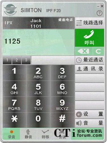 圖:Simton IPF F20型電腦軟電話操作界面