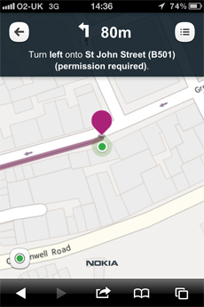 諾基亞地圖移動(dòng)網(wǎng)站目前將會(huì)向所有設(shè)備的瀏覽器開放其Turn-by-turn步行語(yǔ)音導(dǎo)航服務(wù),其中包括iPhone。