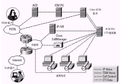 Cisco IPCC提供了一個成熟的移植戰(zhàn)略,能夠在將VoIP引入到聯(lián)絡中心的同時,保護客戶在傳統(tǒng)設施上的投資。IPCC的特殊功能包括智能呼叫路由選擇、ACD功能、網(wǎng)絡到桌面CTI、IVR集成、呼叫排隊以及合并報告。該平臺以IP為中心的體系結(jié)構(gòu)能夠擴展聯(lián)絡中心計劃的邊界;這一解決方案既可被部署在單一地點,也可以被部署在多地點環(huán)境中。