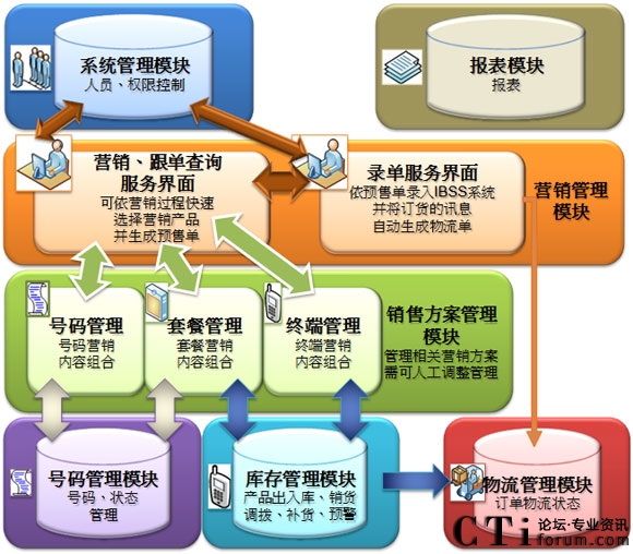 運(yùn)營管理系統(tǒng)的模塊主要由七個組成:系統(tǒng)管理模塊、營銷管理模塊、銷售方案管理模塊、號碼管理模塊、庫存管理模塊、物流管理模塊和報表模塊。