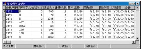 用戶(hù)可以撥打話(huà)費(fèi)查詢(xún)電話(huà)號(hào)碼,話(huà)費(fèi)查詢(xún)系統(tǒng)會(huì)提示用戶(hù)輸入查詢(xún)密碼,然后提示選擇余額查詢(xún)/時(shí)段查詢(xún)。用戶(hù)選擇時(shí)段查詢(xún),查詢(xún)系統(tǒng)會(huì)提示用戶(hù)輸入查詢(xún)時(shí)段,然后自動(dòng)將該時(shí)段內(nèi)的話(huà)費(fèi)統(tǒng)計(jì)出來(lái),合成語(yǔ)音,報(bào)給用戶(hù)。時(shí)段話(huà)費(fèi)查詢(xún)必須與LANBIRD計(jì)費(fèi)/收費(fèi)系統(tǒng)配合使用,利用網(wǎng)絡(luò)共享分機(jī)話(huà)費(fèi)數(shù)據(jù)表,否則系統(tǒng)將得不到數(shù)據(jù)而無(wú)法工作。LANBIRD計(jì)費(fèi)/收費(fèi)系統(tǒng)可以與查詢(xún)繳系統(tǒng)無(wú)縫集成,不需任何人工操作。如果采用地三方的計(jì)費(fèi)軟件,則須用手轉(zhuǎn)換,或用我們的自動(dòng)轉(zhuǎn)換模塊,不過(guò)由于不同的計(jì)費(fèi)系統(tǒng),話(huà)費(fèi)存儲(chǔ)格式不同,自動(dòng)轉(zhuǎn)換模塊需要專(zhuān)門(mén)開(kāi)發(fā)。