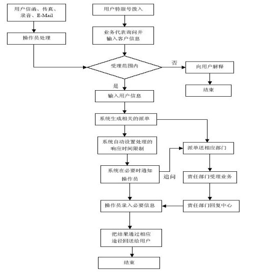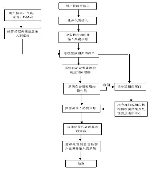 處理-> 審查-> 答復-> 結(jié)束。在集成工作流環(huán)境中,座席、班長座席可以受理客戶來電,生成客戶來電受理單等待下一步處理。