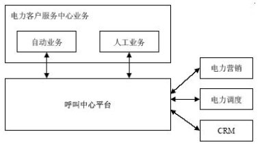 電力客戶服務中心整體結(jié)構(gòu)根據(jù)呼叫中心方案設計,采用呼叫中心平臺系統(tǒng)為客服平臺,在平臺上開發(fā)電力自動業(yè)務和人工業(yè)務系統(tǒng);并且利用呼叫中心系統(tǒng)平臺的互連互通能力跟其他電力相關(guān)軟件系統(tǒng)對接,如后臺電力營銷子系統(tǒng),電力管理系統(tǒng),電力調(diào)度,電力網(wǎng)管,客戶關(guān)系管理子系統(tǒng)等等。