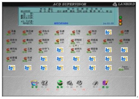 可監(jiān)視客戶服務(wù)平臺(tái)的全部坐席的工作狀態(tài), 包括簽入, 簽出, 空閑,示忙, 正在通話, 等待應(yīng)答, 等待來話, 用戶掛機(jī), 等待被叫振鈴,