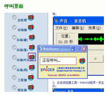 WCS3050主要提供Web點擊呼叫功能,當用戶在瀏覽企業(yè)網站或網絡廣告的時候,通過點擊該企業(yè)的聯系電話,甚至企業(yè)標識等其它標志,直接下載安裝特定的控件后就可以通過電腦打電話到該企業(yè)服務中心,大大方便了用戶對企業(yè)及其產品的進一步了解,更加促進了企業(yè)的市場銷售和宣傳。