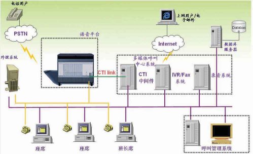 系統(tǒng)采用軟總線設(shè)計(jì) , 實(shí)現(xiàn)硬件無(wú)關(guān)性,通過(guò)加載不同的底層軟件,系統(tǒng)可以支持多種交換機(jī)、多種語(yǔ)音板卡和多種坐席卡。
