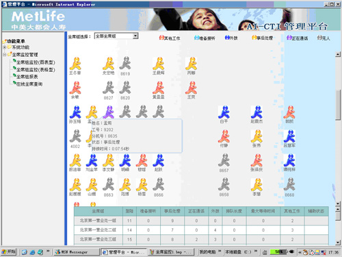 AI-Monitor 實時收集當(dāng)前所有坐席工作狀態(tài)、 IVR 節(jié)點工作狀態(tài)、以及前置交換排隊設(shè)備的狀態(tài)信息等,并以圖形化界面的方式實時提供各種報告。