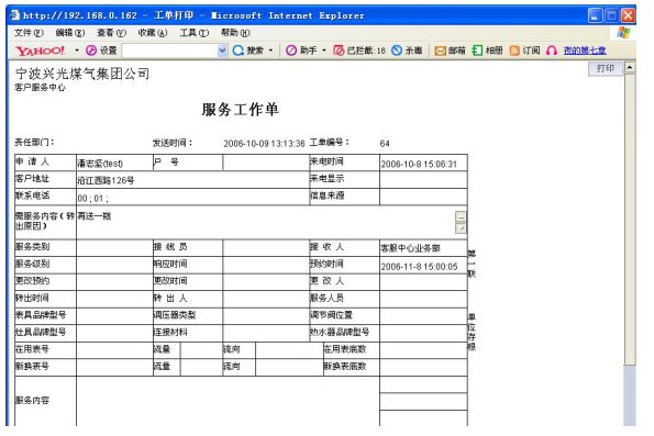 1)業(yè)務(wù)咨詢:用戶通過人工、自動(dòng)語音等方式咨詢有關(guān)政策法規(guī)、資費(fèi)標(biāo)準(zhǔn)、用氣常識(shí)、報(bào)裝方法等,系統(tǒng)以語音、傳真、Email、短消息等方式回復(fù)客戶。