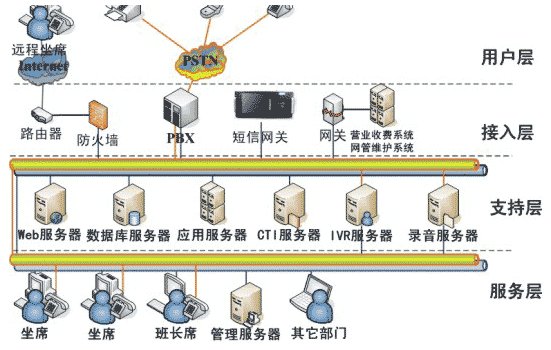 系統(tǒng)同時能對座席的工作形成報告,包括空閑時間、接聽數(shù)量、平均交談時間、用戶平均等待時間等方面的報告。以便對座席和專業(yè)工作人員進(jìn)行工作考核。