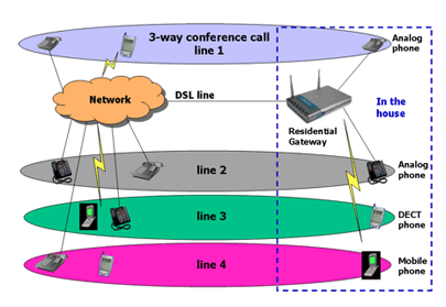 下一代住宅網(wǎng)關(guān)提供領(lǐng)先的數(shù)據(jù)能力,且還可擔(dān)當(dāng)家庭語音和數(shù)字通信的中樞。某些住宅網(wǎng)關(guān)將支持用VoIP替換標(biāo)準(zhǔn)普通老式電話服務(wù)(POTS),而其它網(wǎng)關(guān)將提供用于固定移動融合(FMC)的平臺,從而更進一步。這就允許消費者在室外時,利用與常規(guī)移動電話一樣工作、支持Wi-Fi的移動電話通過蜂窩網(wǎng)絡(luò)接打電話和接入互聯(lián)網(wǎng)。當(dāng)消費者回屋后,電話會感知這一變化并與無線局域網(wǎng)(WLAN)連通,然后可將其當(dāng)無繩VoIP電話使用。市場研究公司iSupply預(yù)計,2006年售出了2,200萬部具有Wi-Fi功能的移動電話,到2010年,該數(shù)字將達2.85億部。