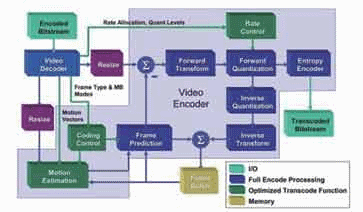 過去幾年來,業(yè)界針對轉(zhuǎn)碼工作提出了幾種不同的方法,可提高處理與存儲器資源的使用效率。大多數(shù)這種方案都建立在這樣一種認識基礎之上,即我們能通過更先進的技術(shù)對初始編碼過程中創(chuàng)建的量子化和頻率域信息進行修改,更好地加以利用,摒棄其中無用的東西,而不必簡單地對原始視頻內(nèi)容進行重構(gòu)。