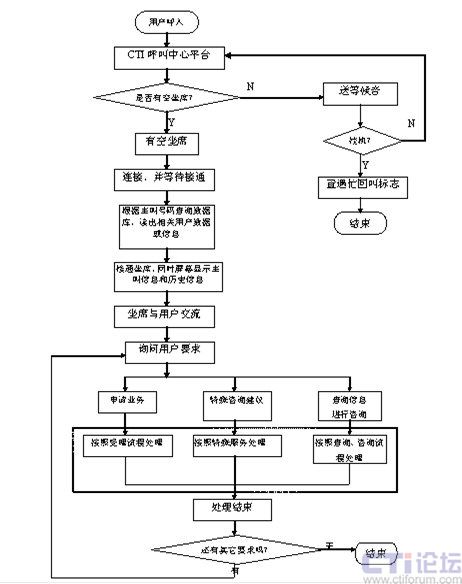 直接人工業(yè)務(wù)處理流程是指:用戶撥入服務(wù)中心后,由坐席員直接與用戶進(jìn)行語音交流,完成用戶要求的服務(wù)方式的工作流程。其流程圖如下: