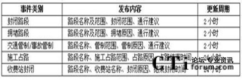 即時路況信息發(fā)布主要通過自動語音播報。發(fā)布內容建議如下表所示:
