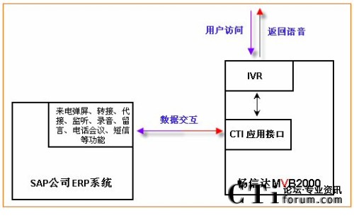 通過集成,不但可以實現(xiàn)與SAP公司ERP系統(tǒng)的實時數(shù)據(jù)傳輸,實現(xiàn)客戶管理、日常辦公,并且可使ERP系統(tǒng)上具有:點擊外呼、批量外呼、來電彈屏、收聽錄音、查看報表、監(jiān)控電話線路等更多增值功能,詳細接口內容見《MVB2000 WEB開發(fā)接口》。