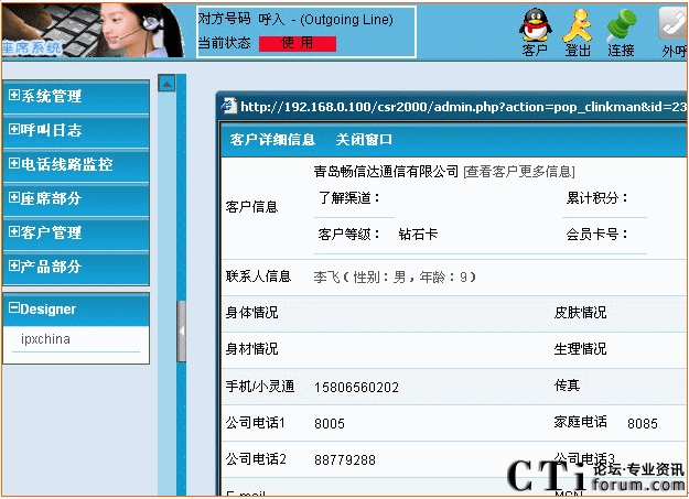 維護(hù)人員在局域網(wǎng)絡(luò)環(huán)境下,通過(guò)自己PC機(jī)的瀏覽器的頁(yè)面即可完成對(duì)呼叫中心系統(tǒng)的管理和維護(hù):
