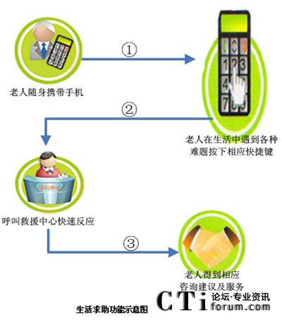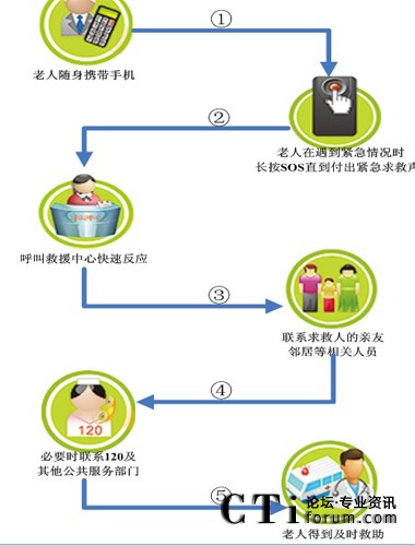 老人使用不記任何電話號,按下紅鍵(盲人按粗糙鍵)就可發(fā)送緊急求救信號;按下綠鍵可以發(fā)送求助信號,求助信息根據(jù)用戶需要在同一時間發(fā)送到信息服務(wù)中心、社區(qū)網(wǎng)格管理員、老人指定親屬、物業(yè)公司、及有關(guān)部門,可實(shí)現(xiàn)完整信息獲取和快速響應(yīng),啟動多方通話進(jìn)行緊急調(diào)度,保障老人的生命財產(chǎn)安全。