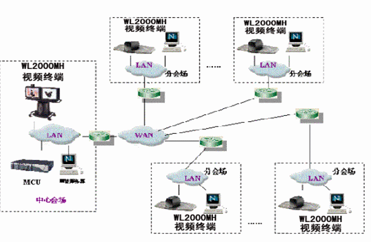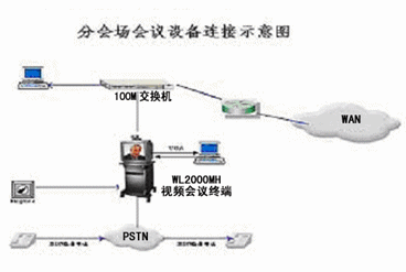 在各分會(huì)場,提供100M快速交換以太網(wǎng)端口連接分會(huì)場會(huì)議終端WL-2000MH,以上設(shè)備分別通過綜合信息網(wǎng)提供的100M快速交換以太網(wǎng)接入主會(huì)議系統(tǒng)網(wǎng)。另外,在分會(huì)場預(yù)留一條電話備份線路,也可以用音頻撥號方式撥入,用參加視頻會(huì)議。
