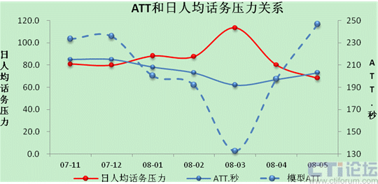 筆者在《話務壓力模型及其應用》一文中量化分析了日人均話務壓力(通話強度)對ATT的量化影響,建立了一個話務壓力模型,闡述了ATT、質(zhì)量、效率之間的辯證關系,并進一步說明了如何應用該模型評估ATT的合理波動范圍、進行人員招聘和排班的測算。