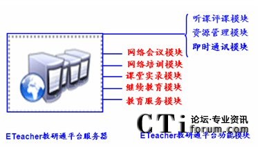 紅杉樹的“教研通”產(chǎn)品是紅杉樹根據(jù)客戶的具體情況,在自身產(chǎn)品“紅杉通”的基礎上,定制擴展而來,是一套適合于教育城域網(wǎng)的,集即時通訊、網(wǎng)絡會議、網(wǎng)絡培訓、課堂實錄、聽課評課、資源管理、繼續(xù)教育、教育服務等功能于一體的綜合性教育應用系統(tǒng)(包括服務器及軟件平臺)。
