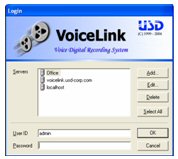 - 簡(jiǎn)易且方便的管理:在現(xiàn)有的TCP/IP網(wǎng)絡(luò)的條件下,管理員或主管可以在任何地方遠(yuǎn)程登陸到Voicelink服務(wù)器上,來(lái)進(jìn)行錄音回放和管理。
