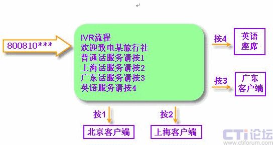 當(dāng)客戶(hù)撥打電話(huà)進(jìn)入SA800系統(tǒng)平臺(tái)的呼叫中心。通過(guò)IVR導(dǎo)航,可隨意打到各地的客戶(hù)端,再通過(guò)客戶(hù)端進(jìn)行更加細(xì)致的分類(lèi)。并且,每個(gè)客戶(hù)端都可以互相轉(zhuǎn)接。IVR流程可以無(wú)限下拉菜單。