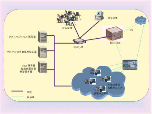方式的解決方案。一期工程要開通一條E1接入,8個(gè)人工坐席;并且整個(gè)呼叫中心要與現(xiàn)有辦公電話網(wǎng)絡(luò)無縫銜接,與報(bào)社采編、出版等業(yè)務(wù)要相互掛鉤。