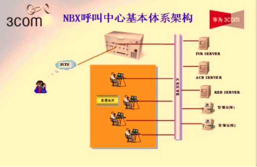 - 華為-3Com NBX采用數(shù)據(jù)包交換技術(shù),實(shí)現(xiàn)了語(yǔ)音與數(shù)據(jù)的融合。NBX呼叫中心系統(tǒng)平臺(tái)可以為客戶服務(wù)人員提供軟件和硬件的IP電話終端,用戶只需將坐席PC或IP話機(jī)接到桌面網(wǎng)口即可,無(wú)須重新部署語(yǔ)音線路,同時(shí)利用語(yǔ)音與數(shù)據(jù)融合的技術(shù)使得客服中心實(shí)現(xiàn)了統(tǒng)一的通信網(wǎng)絡(luò),減少的2套布線的繁瑣,大大降低了系統(tǒng)的維護(hù)及管理的工作量。