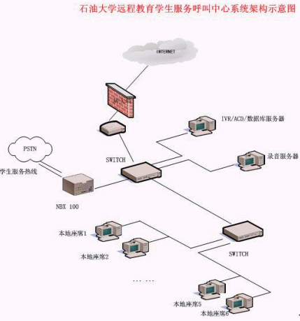 石油大學遠程教育學生服務(wù)呼叫中心系統(tǒng)架構(gòu)示意圖