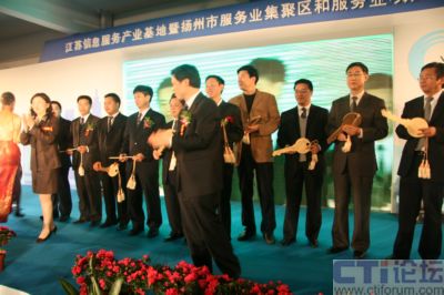 4月21日,江蘇信息服務(wù)產(chǎn)業(yè)基地暨揚州市服務(wù)業(yè)集聚區(qū)和服務(wù)業(yè)項目推介洽談會在江蘇信息服務(wù)產(chǎn)業(yè)基地(揚州)隆重召開,省信息產(chǎn)業(yè)廳副廳長龔懷進、揚州市委常委、常務(wù)副市長張京霞為省信息安全技術(shù)中心揭牌,中國網(wǎng)通集團公司總工程師滕勇,神州數(shù)碼高級副總裁陳勇,上海萬得信息股份董事長陸風(fēng)等數(shù)十位集團公司老總現(xiàn)場祝賀,同時IBM、AVAYA、優(yōu)勝資訊、神州數(shù)碼等60多家企業(yè)現(xiàn)場簽定了投資合作協(xié)議,而華潤通信、中國電信、酒店無憂、漢世紀(jì)等10家企業(yè)則從廣陵區(qū)委書記孔令俊手中接過了入駐金鑰匙,成為首批入駐江蘇信息服務(wù)產(chǎn)業(yè)基地的企業(yè),至此江蘇信息服務(wù)產(chǎn)業(yè)基地迎來首發(fā)項目招商的“開門紅”,江蘇信息服務(wù)產(chǎn)業(yè)基地也因此被業(yè)界冠以中國首家專業(yè)定位信息呼叫和數(shù)據(jù)處理產(chǎn)業(yè)的“中國聲谷”的美譽。 “江蘇信息服務(wù)產(chǎn)業(yè)基地(揚州)”位于廣陵新城內(nèi),為省信息產(chǎn)業(yè)廳與揚州市政府聯(lián)手打造的中國首家專業(yè)定位于呼叫信息和數(shù)據(jù)處理產(chǎn)業(yè)的省級信息服務(wù)業(yè)基地,占地2.52平方公里,總投資50億元,處于揚州ECBD核心區(qū)域,交通便捷,區(qū)位優(yōu)勢獨特,生態(tài)環(huán)境優(yōu)美。基地按照“產(chǎn)業(yè)社區(qū)”的標(biāo)準(zhǔn)和“商務(wù)公園”的理念規(guī)劃建設(shè),重點發(fā)展信息服務(wù)產(chǎn)業(yè)及具有揚州特色的城市信息化應(yīng)用軟件和嵌入式軟件產(chǎn)業(yè),立足長三角、面向全國、服務(wù)世界,逐步發(fā)展成為全國乃至世界呼叫中心產(chǎn)業(yè)最佳實踐基地、全國生產(chǎn)性服務(wù)業(yè)的標(biāo)桿示范基地及呼叫中心人才培訓(xùn)與派遣基地。