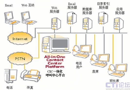 CIC可以方便的和現(xiàn)有的郵件系統(tǒng),Web服務(wù)器,數(shù)據(jù)庫,索引目錄服務(wù)器 (Directories) 和主機(jī)系統(tǒng)無縫集成在一起,無需昂貴的CTI中間鍵或集成服務(wù)。
