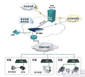 采用NGN+IP PBX的解決方案,不僅可以增強(qiáng)IP PBX組網(wǎng)和業(yè)務(wù)通信能力,還可以配合運(yùn)營(yíng)商的NGN平臺(tái)開(kāi)拓多種業(yè)務(wù)模式,成為NGN的有效擴(kuò)展,為運(yùn)營(yíng)商和最終用戶提供雙贏的有利協(xié)助。淮安網(wǎng)通就采用了Zed-3(捷思銳科技)的IP PBX進(jìn)行大客戶的語(yǔ)音接入。該IP PBX主要提供了用戶分機(jī)號(hào)碼分配功能,并為用戶提供語(yǔ)音池(IVR)、語(yǔ)音信箱、保密呼叫、NGN業(yè)務(wù)接入等多種應(yīng)用服務(wù)。