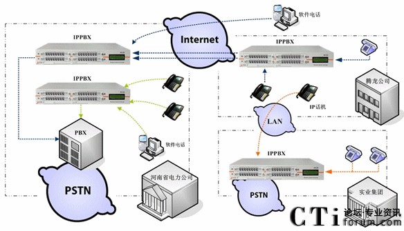 · “騰龍公司”需要組建內(nèi)部電話(huà)網(wǎng),并且可以與“河南電力”進(jìn)行VoIP通話(huà)。可以進(jìn)行電話(huà)會(huì)議;
