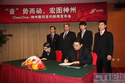 2009年3月10日,國內(nèi)最大的整合IT服務(wù)提供商神州數(shù)碼和國際領(lǐng)先的高端音頻會(huì)議系統(tǒng)供應(yīng)商ClearOne在京簽約,共同拓展國內(nèi)音頻會(huì)議系統(tǒng)市場,依托ClearOne的技術(shù)、產(chǎn)品、行業(yè)優(yōu)勢和神州數(shù)碼強(qiáng)大的市場號(hào)召力及運(yùn)維能力,開創(chuàng)國內(nèi)音頻會(huì)議系統(tǒng)領(lǐng)域全新格局,為企業(yè)、教育、培訓(xùn)、醫(yī)療及政府等行業(yè)客戶帶來全新震撼體驗(yàn)!