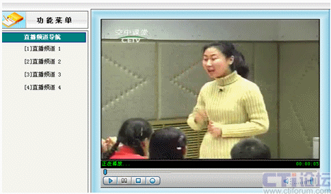 先在直播系統(tǒng)里啟動設(shè)置好的01號頻道,其他教師就可以在各自辦公室通過計算機網(wǎng)絡(luò)觀看遠教節(jié)目,不需淘神費力地到專門的接收室了。如下圖: