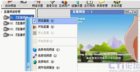 用鼠標右鍵點擊直播頻道管理下的某個頻道號,我這里選擇01:在彈出的右鍵菜單中選擇“直播頻道設(shè)置”或者點擊工具欄里的“頻道設(shè)置”圖標,出現(xiàn)下面的設(shè)置圖: